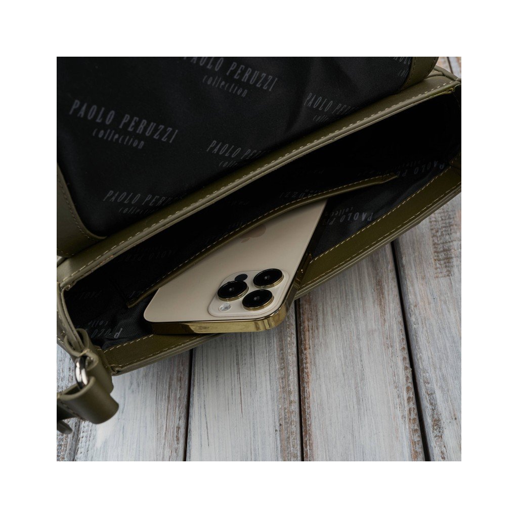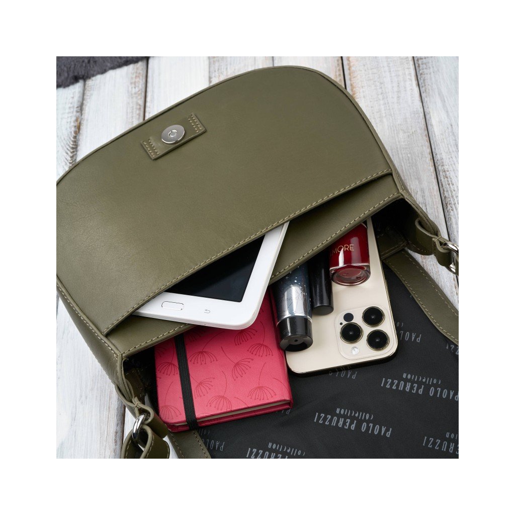 Dámská kožená taška přes rameno Paolo Peruzzi KV-06-GR – elegance a funkčnost v módní olivové verzi