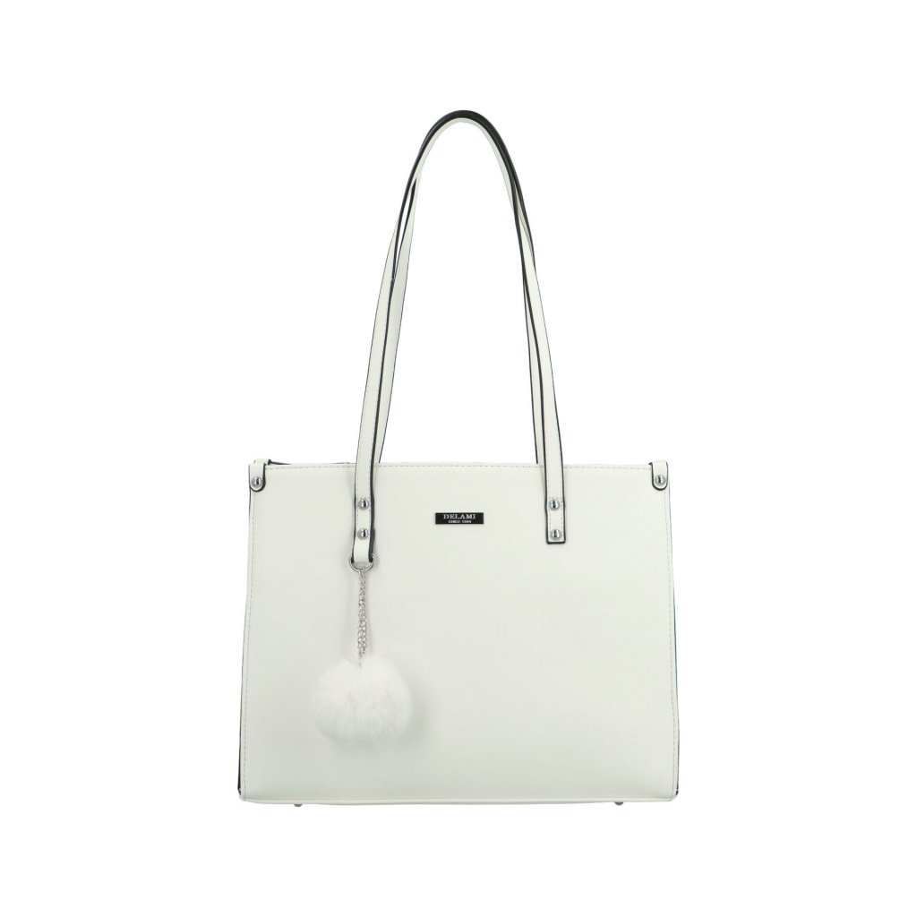 Tento kousek zdůrazňuje ženský styl a nabízí dostatek prostoru pro nošení nezbytných osobních předmětů. Hlavní kapsu zajistíte zipem, její vnitřní prostor je dělený středovou zipovou kapsou a po bočních stranách najdete menší kapsičky v podšívce. Kabelka diponuje i menší zipovou kapsou na zadní straně kabelky. Taška od oblíbené značky Delami vás upoutá chlupatou, ozdobnou kuličkou na přední straně, kde najdete i stříbrné logo značky a menší stříbrné cvočky. Po obvodu je jemně prošitá a černé lemování jen umocní její styl. Její dlouhé a tenké uši skvěle padnou na rameno a díky tomu, že je kabelka odlehčená, unosíte ji po celý den. Součástí kabelky jsou i kovové nožičky, které zajistí, že se vaše kabelka nepoškrábe ani nezašpiní.