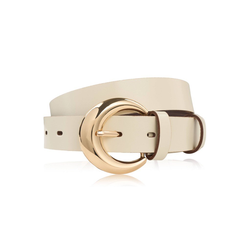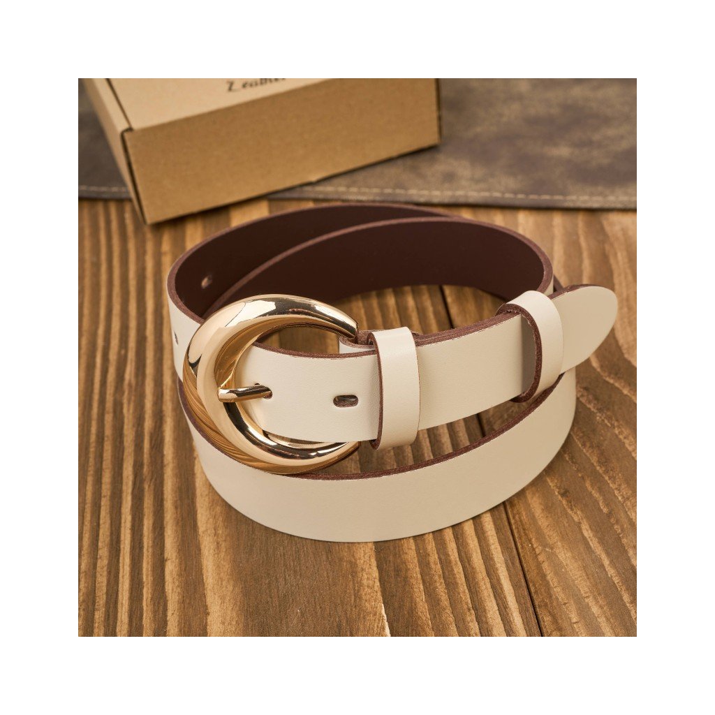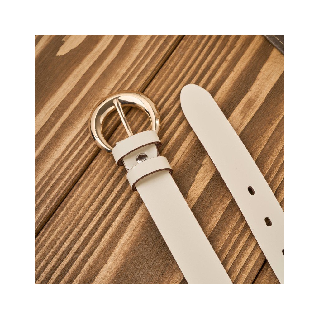 Tento model je vyroben z přírodní, celozrnné kůže, odolné vůči deformaci a oděru. Hladká textura materiálu krásně doplňuje pevnou, třpytivou zlatou sponu, která celému designu dodává osobitý charakter. Opasek je flexibilní, pohodlný a pečlivě vyrobený, což zaručuje jeho dlouhou životnost.