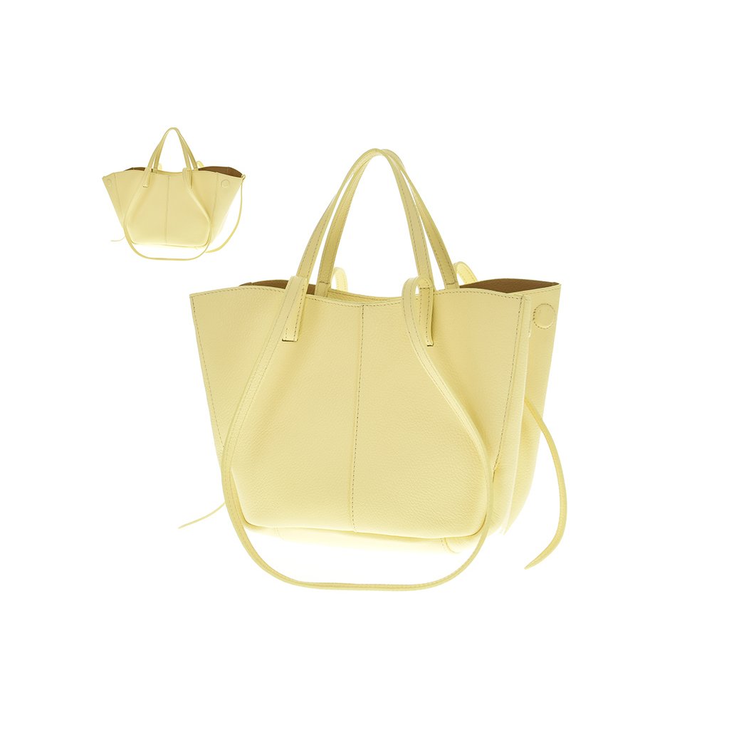 Na bočních stranách má magnety, které umožňuji kabelku nosit ve dvou tvarech.