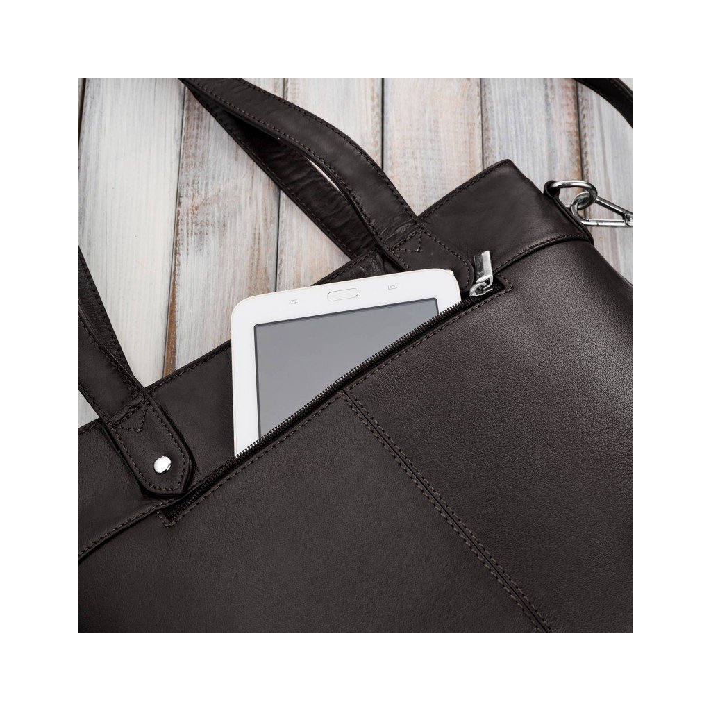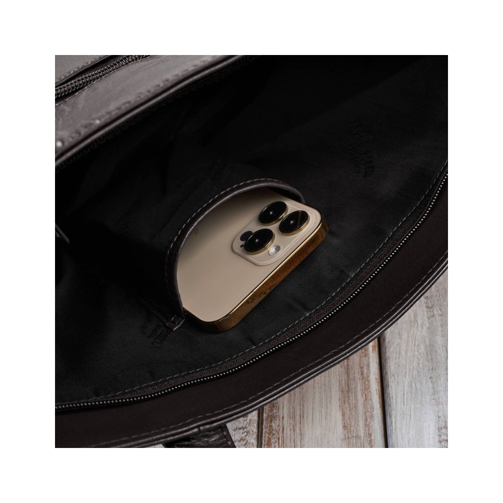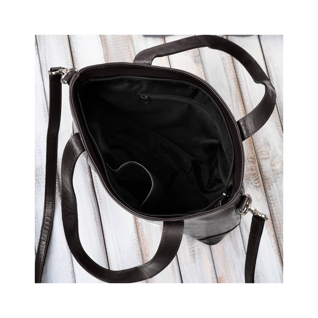 Jedinečná a neopakovatelná – tato slova nejlépe popisují černou kabelku T-41 . Proč? Pravá kůže v tomto modelu je ručně barvená, což ji činí jedinečnou. Jak se na nákupní tašku sluší, interiér nabízí dostatek úložného prostoru. Hlavní kapsa na zip obsahuje kapsu na zip a přihrádku na telefon . To znamená, že nebudete muset hledat své nezbytnosti na dně tašky. Další výhodou je kapsa na zip na zadní straně . Odnímatelný, nastavitelný popruh umožňuje pohodlné nošení tašky přes rameno. Je to perfektní taška na každodenní nošení, ideální na dojíždění, jako praktická taška na dokumenty a další. Tato dámská kožená kabelka je také jedinečným nápadem na dárek pro milovanou osobu!