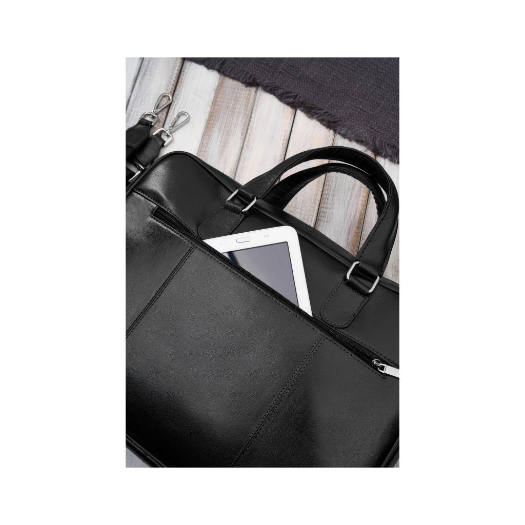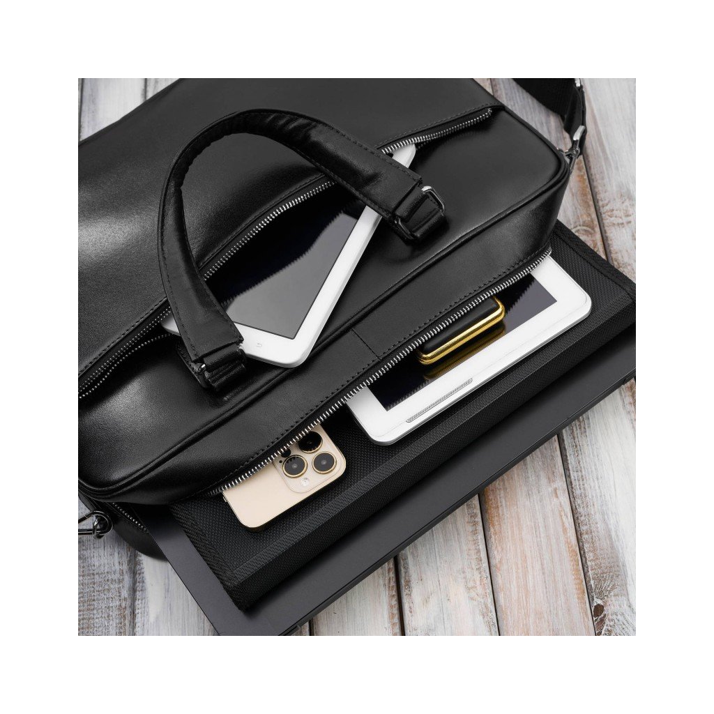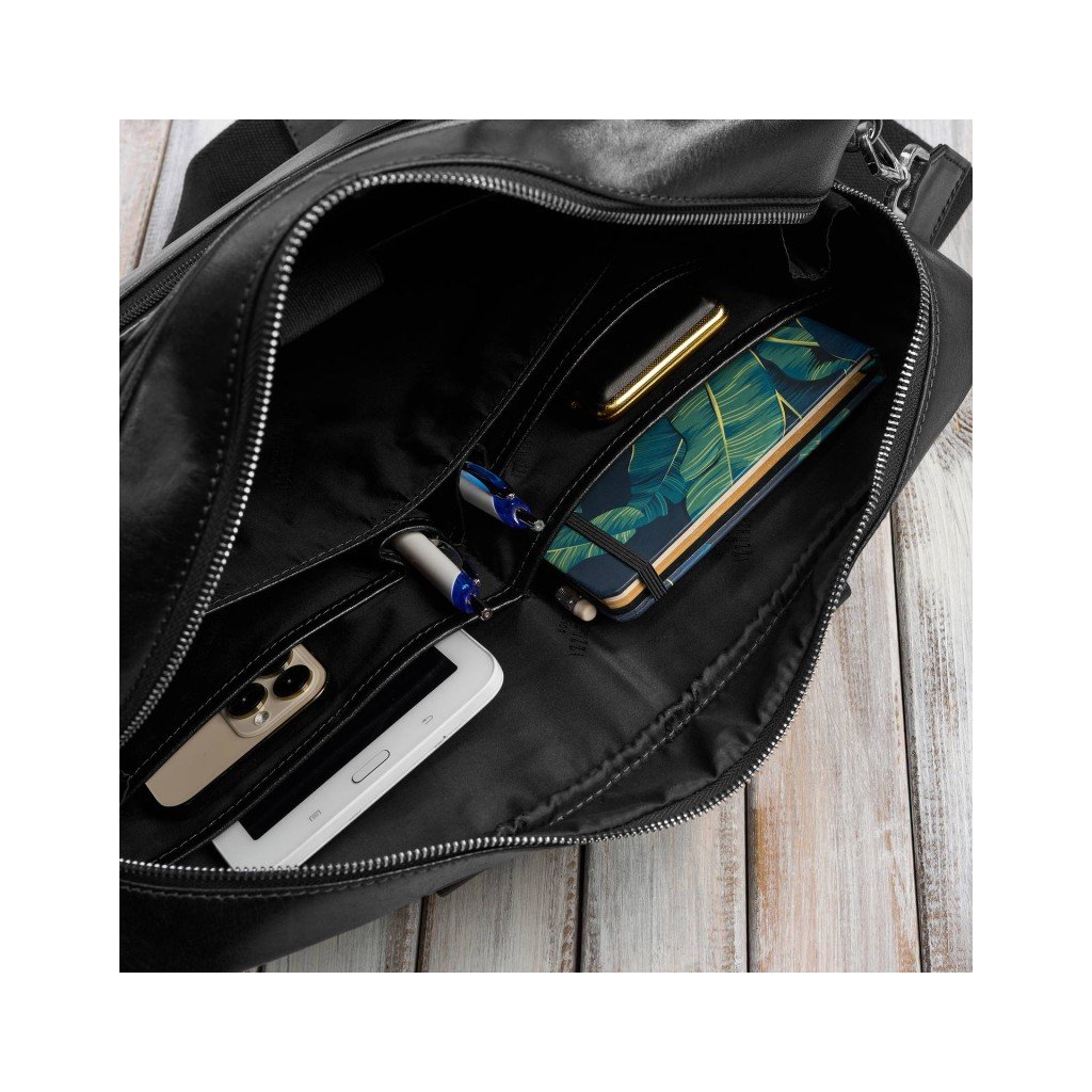 ✔ Elegantní detaily – stříbrné kování vytváří dokonalou kombinaci s černou kůží a dodává tašce moderní a profesionální vzhled.